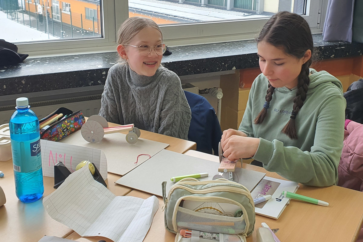An diesen Tagen ging es vor allem darum, verschiedene Formen von Energie zu verstehen und selbst zu erleben. Dazu bauten die Schülerinnen und Schüler unter anderem einen Handwärmer oder einen eigenen Elektromotor, der aus Kupferdraht, einer Batterie, Sicherheitsnadeln und mehreren Magneten bestand. Ebenso war der Aufbau einer Galvanischen Zelle Bestandteil des Projektes, wie auch ein kleines Mathematikexperiment. Am spannendsten fanden die Schülerinnen und Schüler jedoch den Bau eines Fahrzeugs, das mit einem gespannten Gummiring angetrieben werden konnte. Hier konnten sie nicht nur den Aufbau kennenlernen, sondern auch in kleinen Rennen gegeneinander antreten.