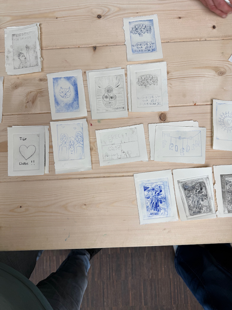 Am 4. März war es soweit. Wie geplant besuchten die Kunstkurse der Q1 das Käthe - Kollwitz - Museum und das Museum Ludwig. Morgens waren die Gruppe 1 und 2 im Kollwitz- Museum und die Gruppe 3 und 4 im Museum Ludwig. Nina Blecher und Christiane Sandkuhl begleiteten die jeweiligen Gruppen im Museum Ludwig, während Gautam die Gruppen im Kollwitz Museum bgeleitete. Tatsächlich waren der Höhepunkt morgens und Nachmittags die Erstellung eigener Kunswerke in der Radiewerkstatt. Jeder Schüler, jede Schülerin durfte eine eigene Kaltnadelradierung im kleinen Format herstellen. Es gelang.