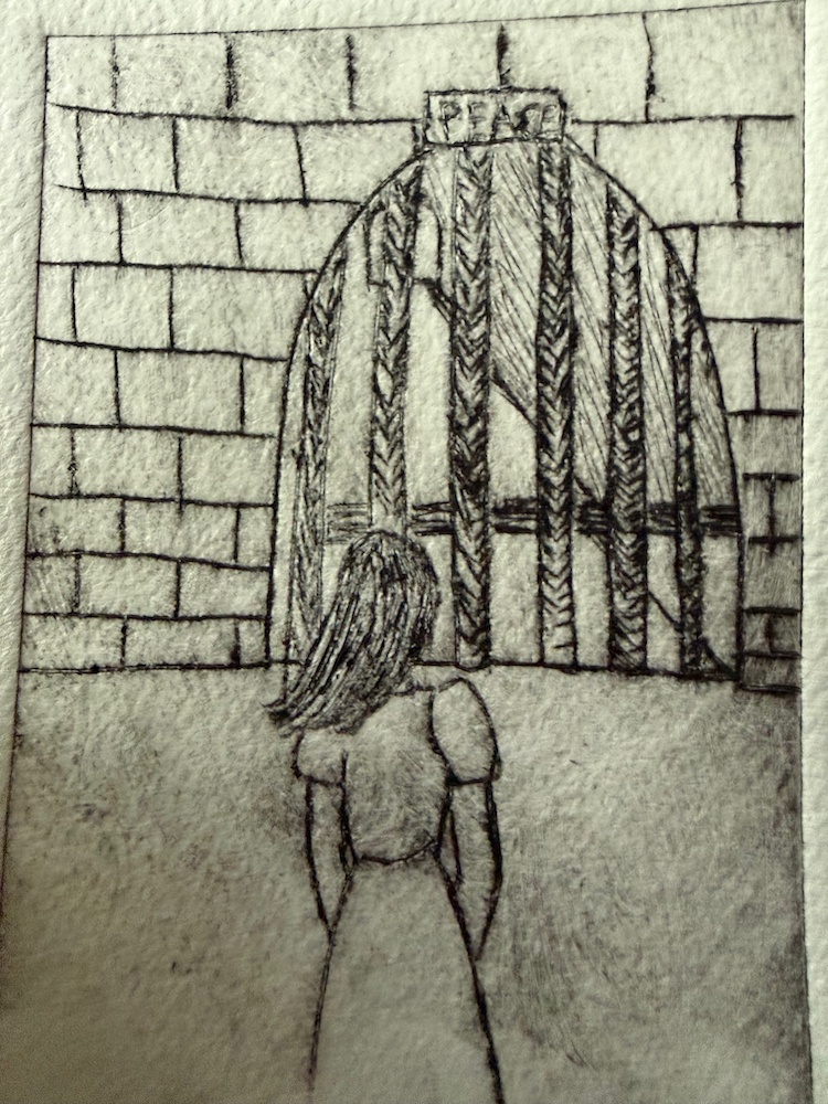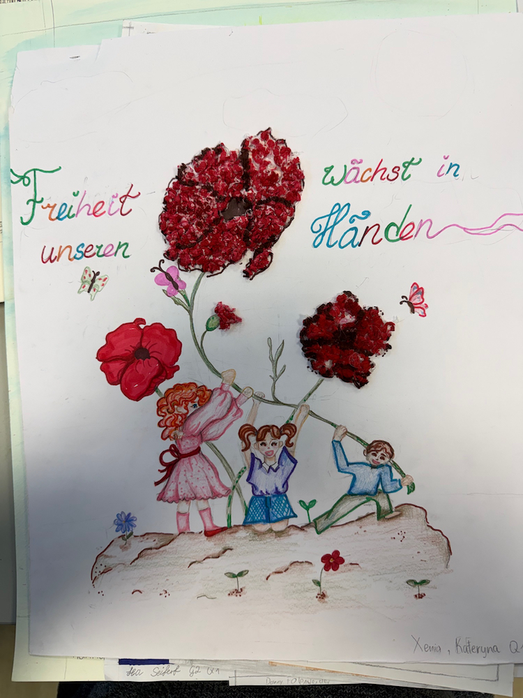 Danach entwickeln wir Friedensplakate und verzichten bewusst auf bekannte Symbole und Kriegs"werkzeuge". Die sogen. Innenschau wird thematisiert, unser Friedensempfinden, unser inneres Gleichgewicht soll Ausdruck werden für unsere Darstellung zum Frieden. "Nur wenn wir den Frieden in uns selber tragen, ist es uns auch möglich anderen friedlich zu begegnen!" Wir sind auf die Ergebnisse gespannt!! Auslöser wird das Friedensplakat von Käthe Kollwitz und bekannte Lieder von Mey und Wader sein. ("Es ist an der Zeit"_https://www.youtube.com/watch?v=2YkNKh6XqhE _ und "Nein, meine Kinder kriegt ihr nicht")_ https://www.youtube.com/watch?v=1q-Ga3myTP4&list=RD1q-Ga3myTP4&start_radio=1