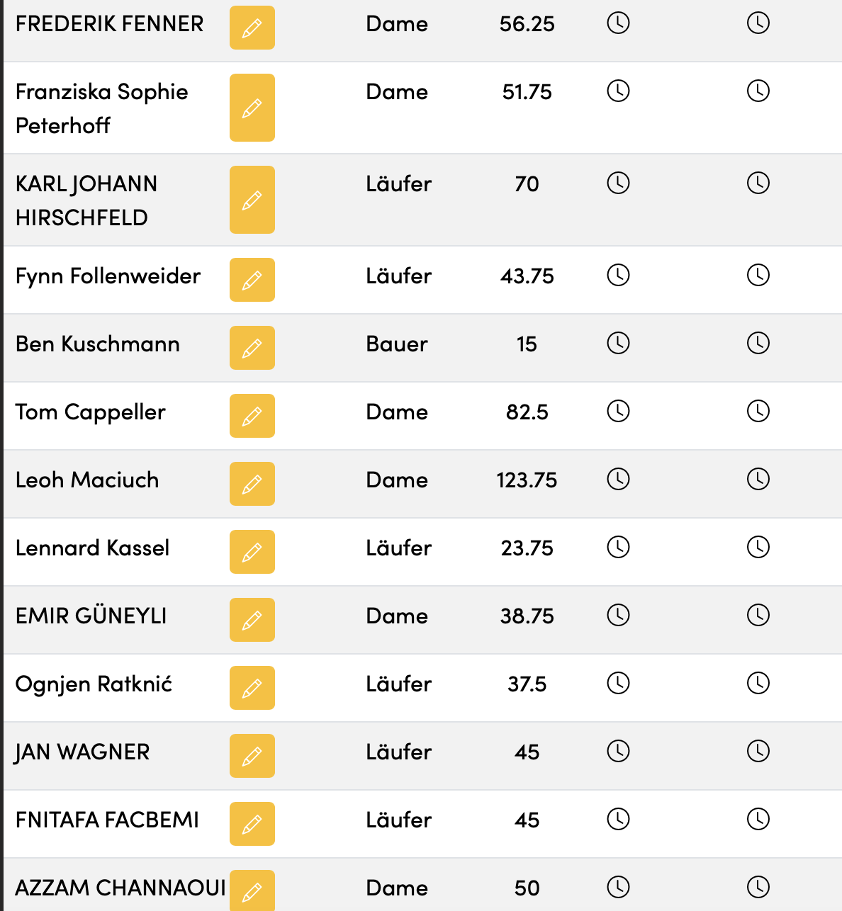1) Tom Lukas Cappeller, 2) Frederik Fenner, 3) Karl Johann Hirschfeld, 4) Jan Wagner, 5) Lennart Kassel, 6) Franziska Peterhoff, 7) Enitafe Fagbemi, 8) Nils Hartmann, 9) Stella - Alexandra Kudrenko, 10) Fynn Folenweider, 11) Ben Kuschmann, 12) Erik Künkel, 13) Emil-Justus Grebe, 14) Azzam Channaoui, 15) Ognien Ratknic, 16) Aya Alfa, 17) Leon Josef Maciuch, 18) Sabrin Lahrech...