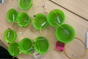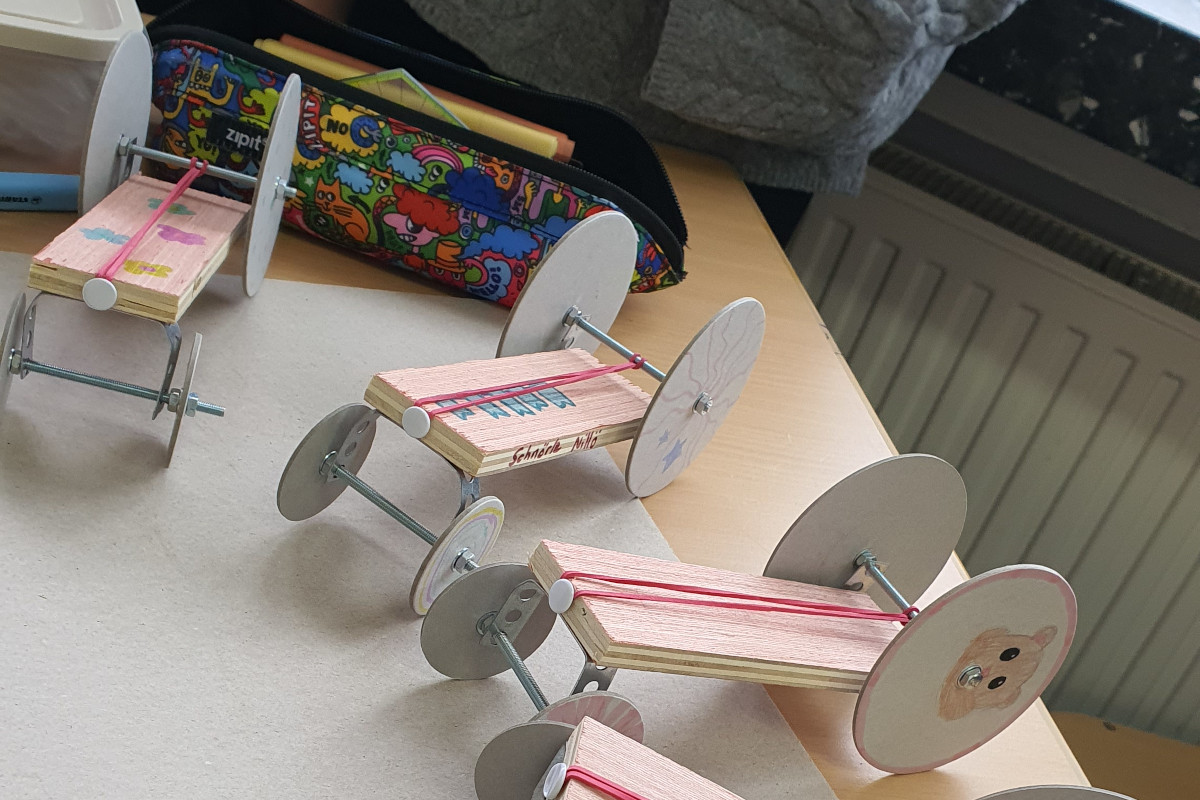 An diesen Tagen ging es vor allem darum, verschiedene Formen von Energie zu verstehen und selbst zu erleben. Dazu bauten die Schülerinnen und Schüler unter anderem einen Handwärmer oder einen eigenen Elektromotor, der aus Kupferdraht, einer Batterie, Sicherheitsnadeln und mehreren Magneten bestand. Ebenso war der Aufbau einer Galvanischen Zelle Bestandteil des Projektes, wie auch ein kleines Mathematikexperiment. Am spannendsten fanden die Schülerinnen und Schüler jedoch den Bau eines Fahrzeugs, das mit einem gespannten Gummiring angetrieben werden konnte. Hier konnten sie nicht nur den Aufbau kennenlernen, sondern auch in kleinen Rennen gegeneinander antreten.